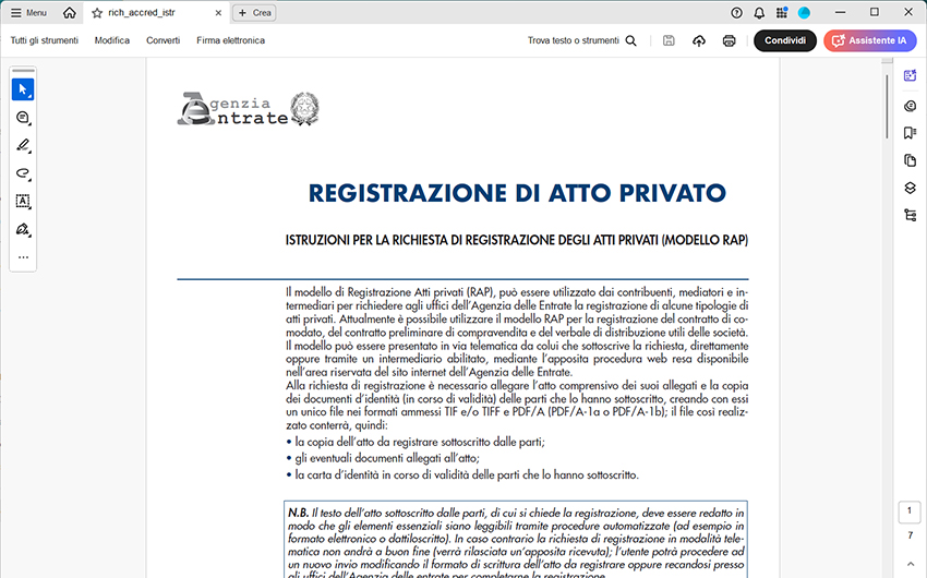 Una volta creato e firmato il documento partendo da uno di quelli presenti nel pacchetto, questa scrittura privata deve avere una data certa. Per questo motivo deve essere registrata all’Agenzia delle Entrate tramite un’apposita procedura chiamata RAP, Registrazione Atti Privati.