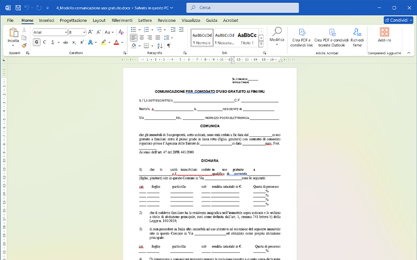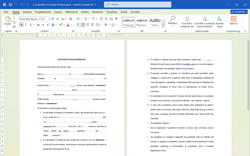 Di seguito alcune schermate di esempio dei file documenti word precompilati, modificabili e pronti all'uso per i contratti e la comunicazione al Comune.